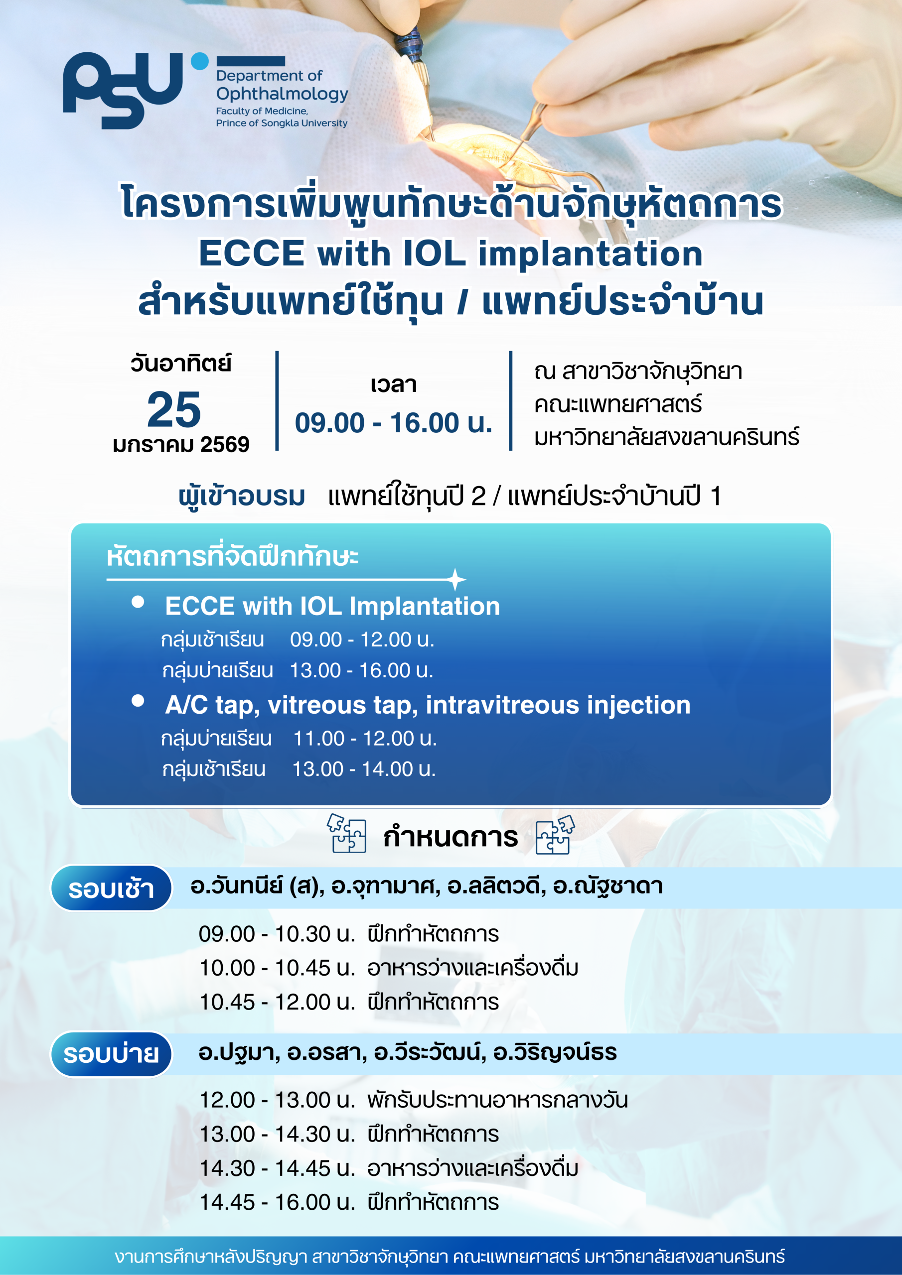 โครงการเพิ่มพูนทักษะด้านจักษุหัตถการ ECCE with IOL implantation